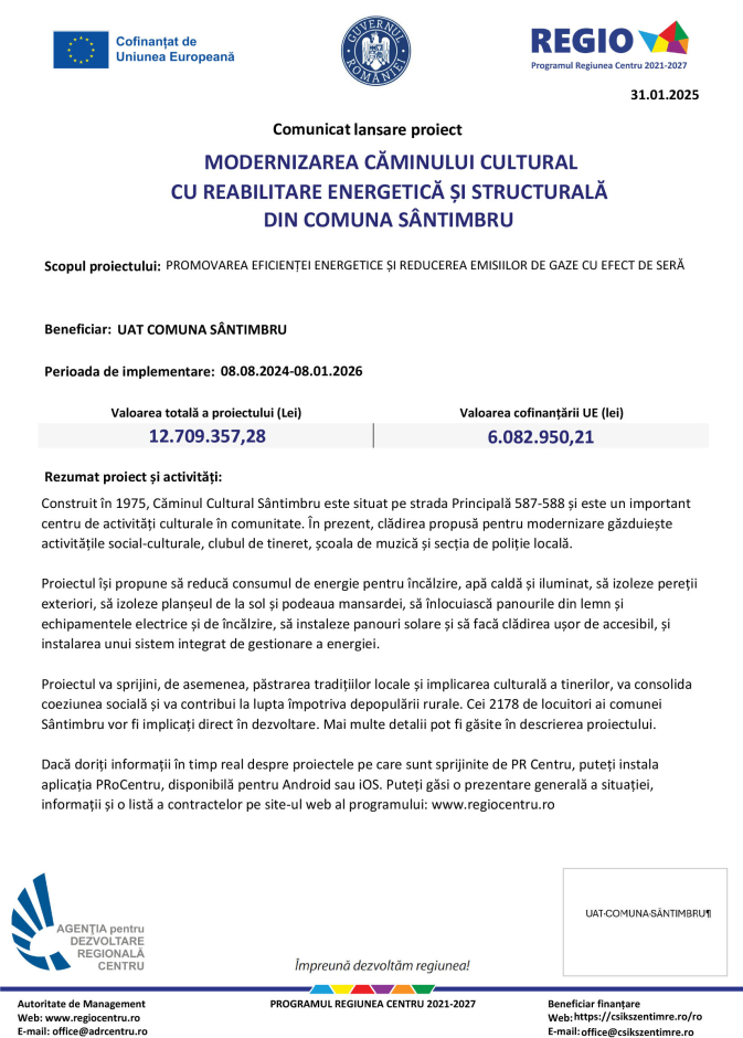 Diseminarea rezultate proiect ”Echipamente IT pentru Soala din Comuna Santimbru, judetul Harghiat >